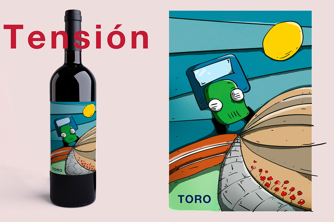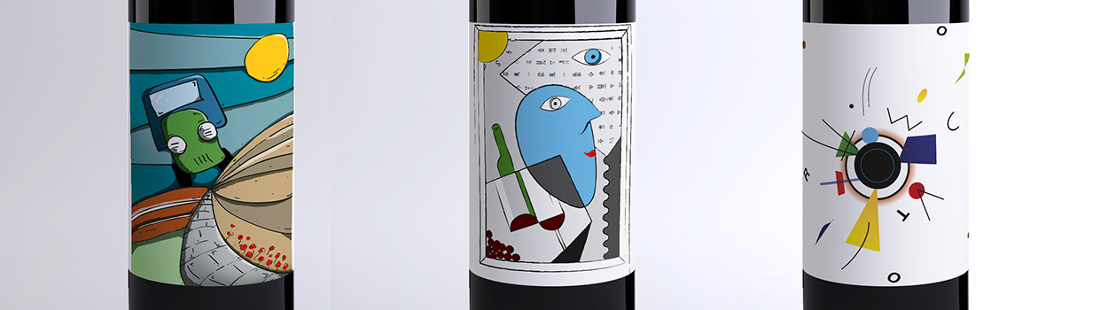 Para los vinos jóvenes, muy marcados olfativamente, escogimos explotar su energía y reflejar el instante previo a la ruptura, los movimientos se aceleran y las formas se tensan a punto de romper con el pasado.